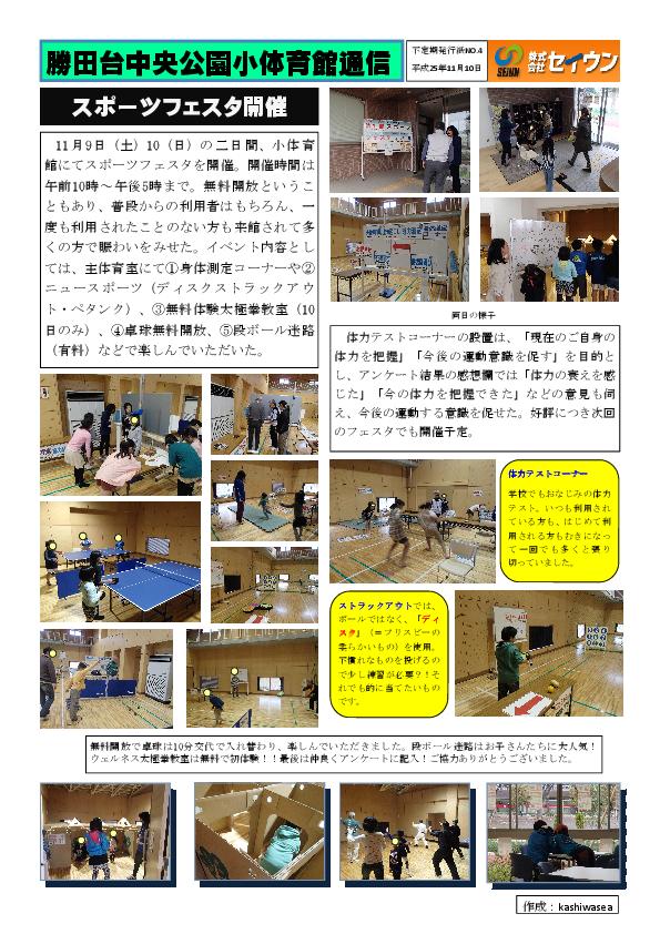 勝田台中央公園小体育館では年に1度のスポーツフェスタを開催しています!