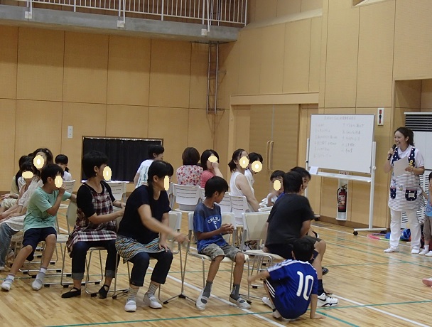 「椅子取りゲーム」やみんなで輪になって童謡に合わせて手遊びなど、昔懐かしの遊びを親子で思
