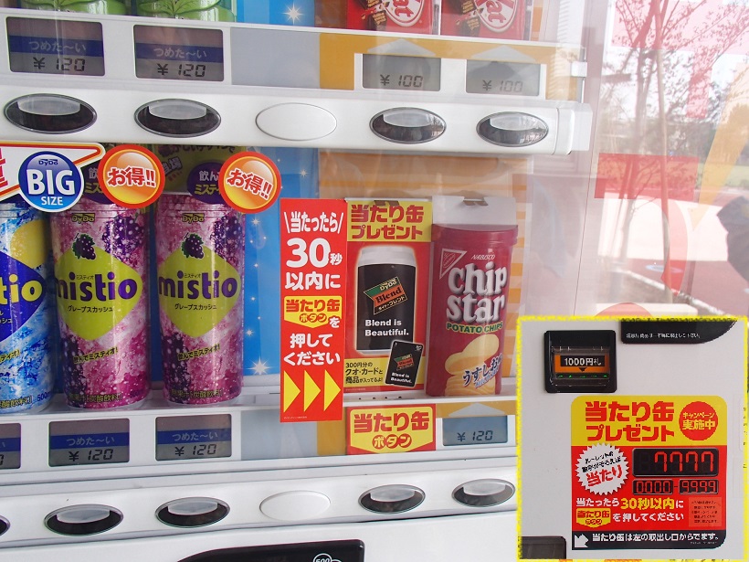 本日12:05頃、当館エントランス入口設置の自動販売機で当たりが出ました!!