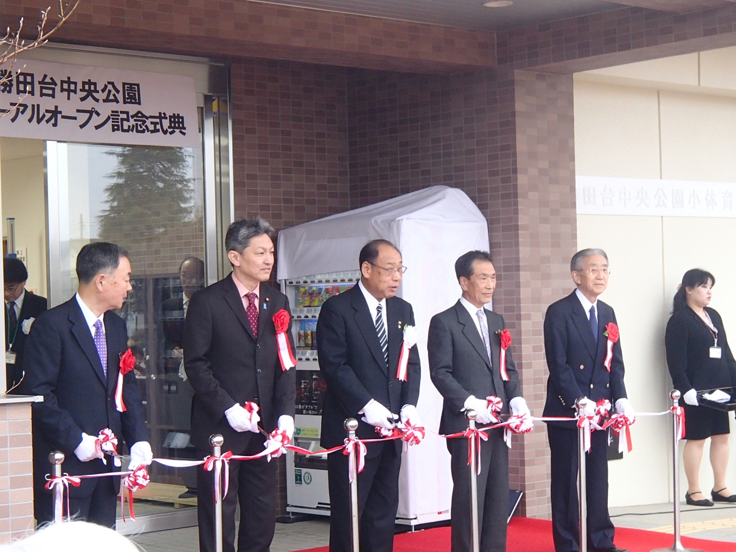 4月2日(火)9:00から勝田台中央公園リニューアルオープンおよび勝田台中央公園小体育館のオープンを記念して式典が開催されました。